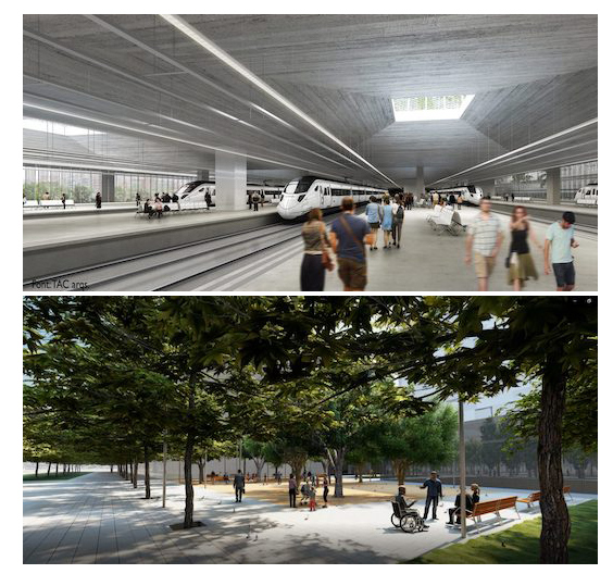 La propuesta ganadora define cómo será la configuración arquitectónica global de la futura estación así como su integración urbana y el diseño de cómo será la cubierta-parque del edificio y los espacios públicos adyacentes. Cabe destacar de la propuesta, la cubierta, que se formaliza como un elemento adaptado a escala humana, convirtiéndose en un nuevo elemento singular de activación social, que permite identificar la estación pero sin interrumpir la continuidad del parque.