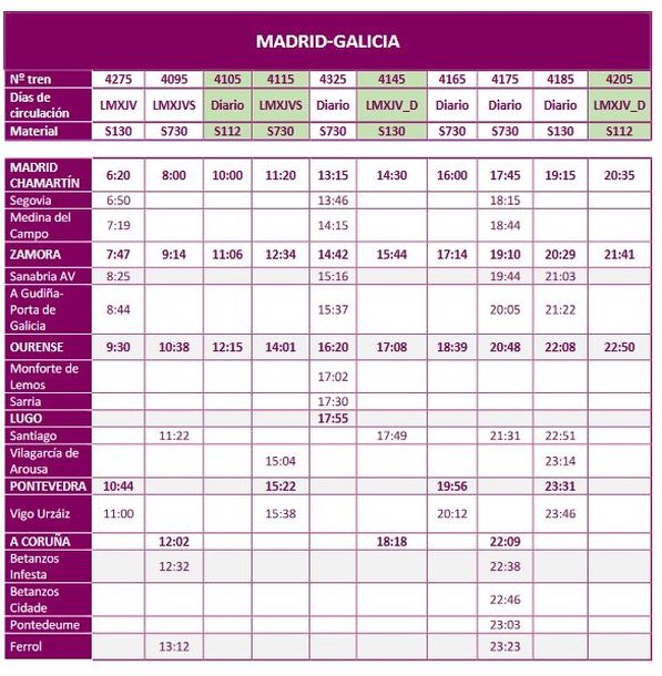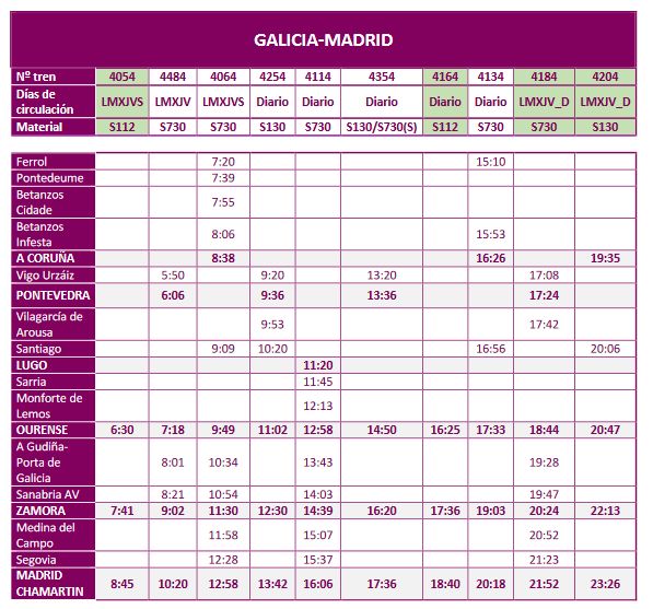De esta forma, los nuevos tiempos de viaje desde las principales ciudades gallegas con Madrid quedarán de la siguiente manera: