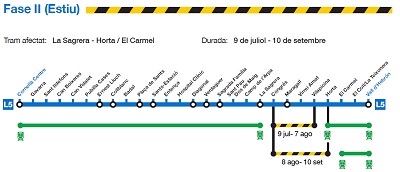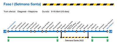 Las obras se realizarán en dos fases. La primera de ellas, en Semana Santa, en dos tramos de trescientos metros entre Verdaguer y Sagrada Familia y entre La Sagrera y Congrés. La segunda, en verano, desde Congrés a Horta.