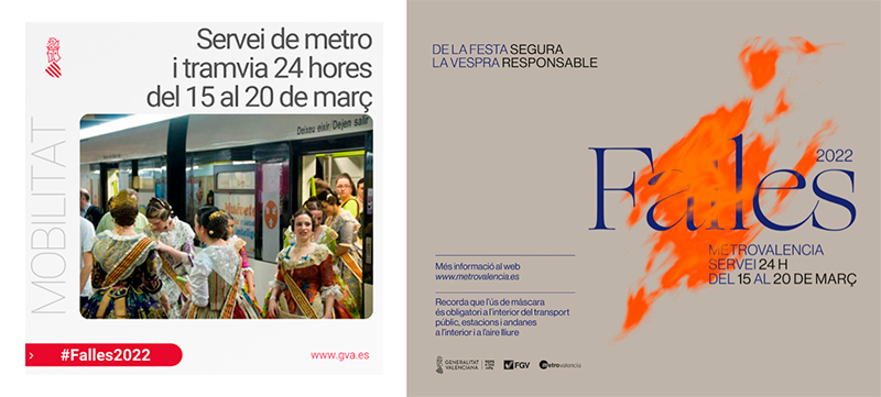 Así, durante los días grandes de Fallas, Metrovalencia ofrecerá ofreciendo 120 horas de servicio continuado y ajustado a la programación de las fiestas en los principales destinos de la red, recuperando el servicio habitual de las Fallas anteriores a la pandemia del Covid-19, manteniendo, a su vez, los protocolos y recomendaciones sociosanitarias actuales.