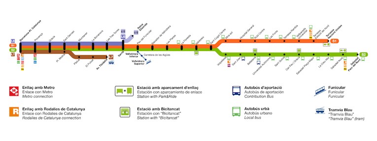 Ahora, el servicio lo conforman las líneas S1 Terrassa, S2 Sabadell, línea 6 Sarrià, línea 7 Av Tibidabo y línea12 Reina Elisenda. Todos los trenes paran en todas las estaciones y, en concreto, los de las líneas S1 y S2 cubren el servicio y las paradas de las líneas S5, S6 y S7, que desaparecen.