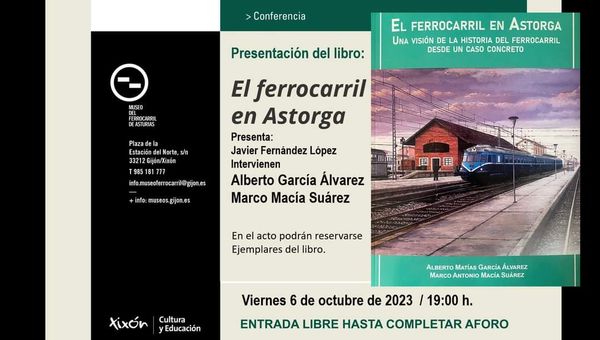 Hoy viernes a las 19 h se presenta en el museo de Asturias el libro "El ferrocarril en Astorga" de Alberto Matías García Álvarez y Marco Antonio Macía Suárez. La presentación estará a cargo del director del museo asturiano, Javier Fernández. Entrada libre hasta completar aforo.