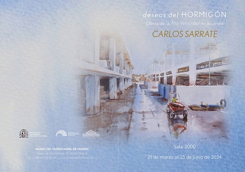 El Museo del Ferrocarril de Madrid acoge, hasta el 23 de junio, la muestra 'Deseos del Hormigón. Obras de Alta Velocidad en acuarela'. Se trata de una exposición formada por veintitrés acuarelas del artista barcelonés Carlos Sarrate, a las que acompaña un documental sobre la construcción de infraestructuras de alta velocidad en Barcelona.