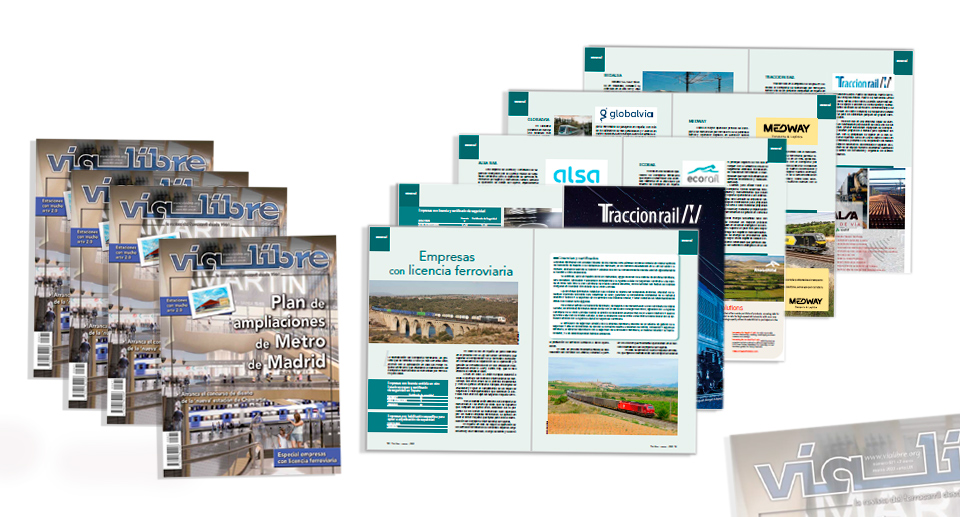 (02/03/2022) La revista Vía Libre correspondiente al mes de marzo ofrece a los lectores un reportaje especial titulado: “Empresas con licencia ferroviaria” con todos los productos y servicios que ofrecen las firmas del sector que participan en el mismo. Dentro del especial han participado empresas como Alsa, Arcelormittal, Ecorail, Globalvai, Iryo, Medway, Redalsa, Renfe y Tracción Rail.