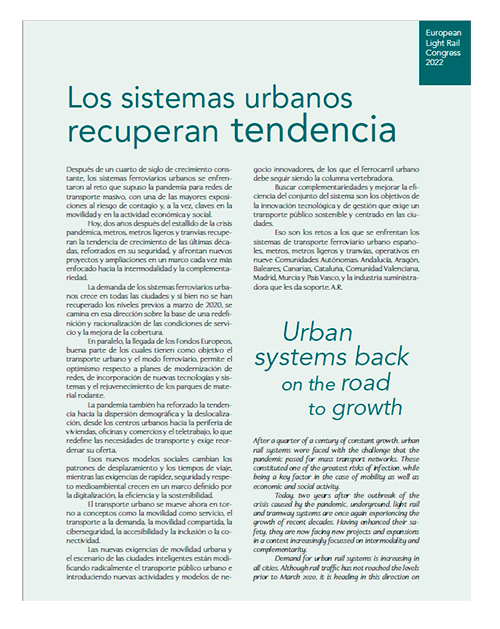 Cerca de veinte empresas y entidades participan en el dossier publicado dentro del número de septiembre y que estará presente en el “European Light Rail Congress 2022” que se celebra del 18 al 19 de mayo en Zaragoza