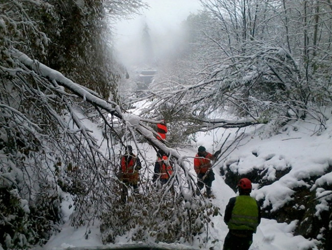 Los bloques de nieve helada pueden actuar como proyectiles contra el tren y provocar roturas de cristales y daños en las carrocerías de los coches. La nieve acumulada provoca caídas de árboles en la vía y en todo caso el frío extremo provoca retrasos, supresiones de servicios y dificultades de acceso a los viajeros.