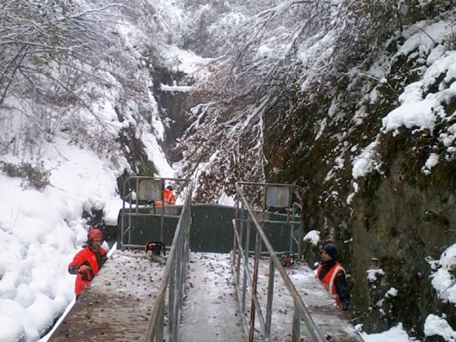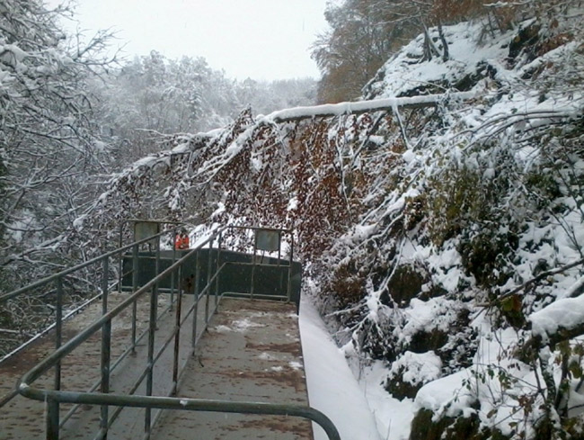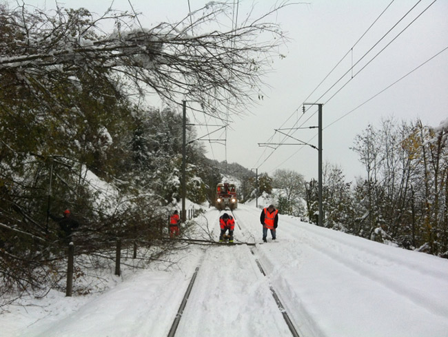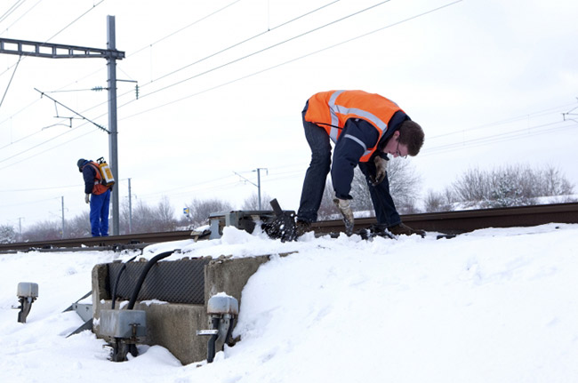 Las nevadas pueden también obstruir la vía, y la acumulación de hielo en la catenaria perturbar la alimentación y provocar paradas en determinados puntos. En el acero del carril el frío puede provocar fisuras e incluso roturas.