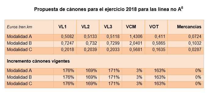 La resolución insta a Adif y Adif Alta velocidad a rebajar globalmente su estimación de coste directamente imputable en 36,8 millones de euros. Para las líneas de alta velocidad y dado su elevado nivel de cobertura, la Comisión, comparte la propuesta de Adif Alta velocidad de no incrementar los cánones ferroviarios y mantener los de 2017.
