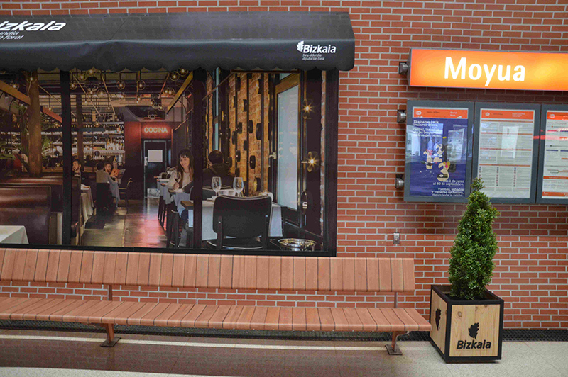 Hasta el 20 de junio, en la estación se recrean diferentes restaurantes, para lo que han sido necesarios más de 790 metros cuadrados de impresión sobre PVC y trescientos metros cuadrados de vinilos.