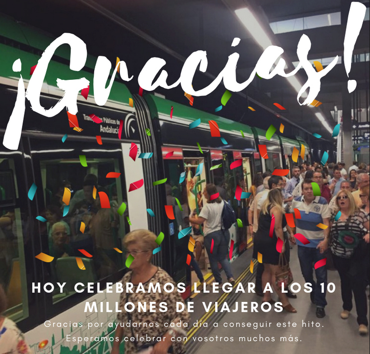 Para celebrar la consecución de este hito en el volumen de viajeros, Metropolitano de Granada ha obsequiado con diez tarjetas monedero, con diez euros de recarga cada una, a otros tantos usuarios habituales del metro en la estación de Recogidas, parada que lidera el ránking de demanda en la red de metro granadina.
