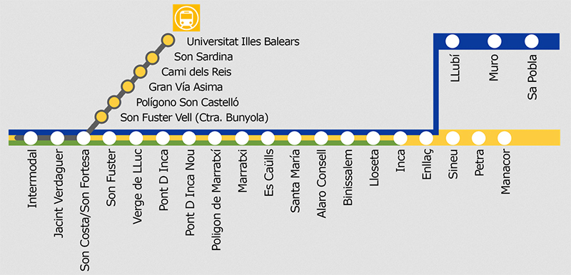 Serveis Ferroviaris de Mallorca, SFM, ha comenzado a prestar servicios por la línea electrificada entre Pama y Sa Pobla, tras la la inauguración de la electrificación entre la estaciones de Enllaç y Sa Pobla. El nuevo servicio ofrece nuevas frecuencias y evita el transbordo en Enllaç para cambiar de los trenes eléctricos a los diésel que antes lo realizaban.