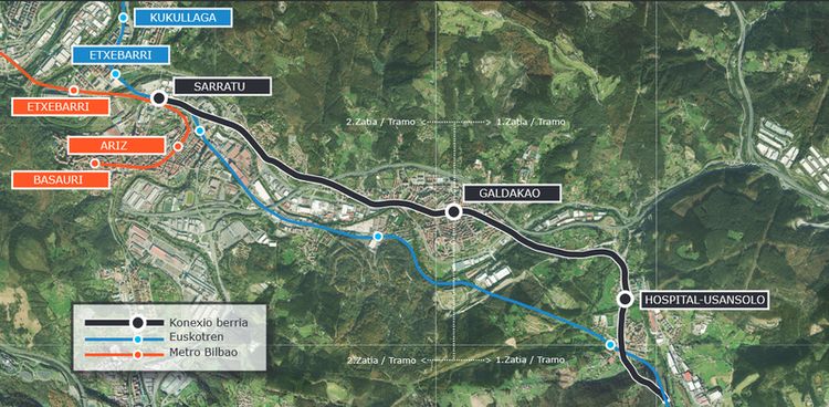 El tramo 2 abarca la construcción de la conexión del centro de Galdácano con la nueva estación intermodal de Basauri, donde enlazará con las líneas 1, 2 y 3 de metro de Bilbao.