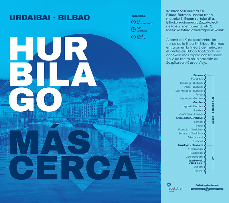 Desde hoy 9 de septiembre, con la entrada en vigor el horario de invierno en todas las líneas de Euskotren, cambia el itinerario en la línea E4 Bilbao–Bermeo, de manera que los trenes entrarán hasta Matiko a través de la Línea 3.