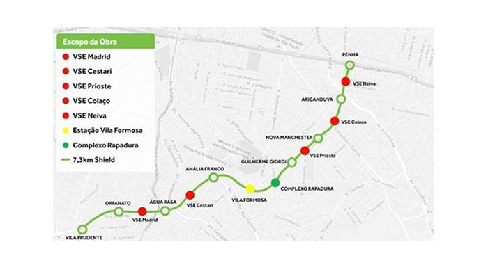 Sacyr Ingeniería e Infraestructuras ha comenzado las obras de construcción del lote 1 de la línea 2, también conocida como línea verde, del metro de la ciudad brasileña de Sao Paulo, entre Vila Prudente y Dutra.