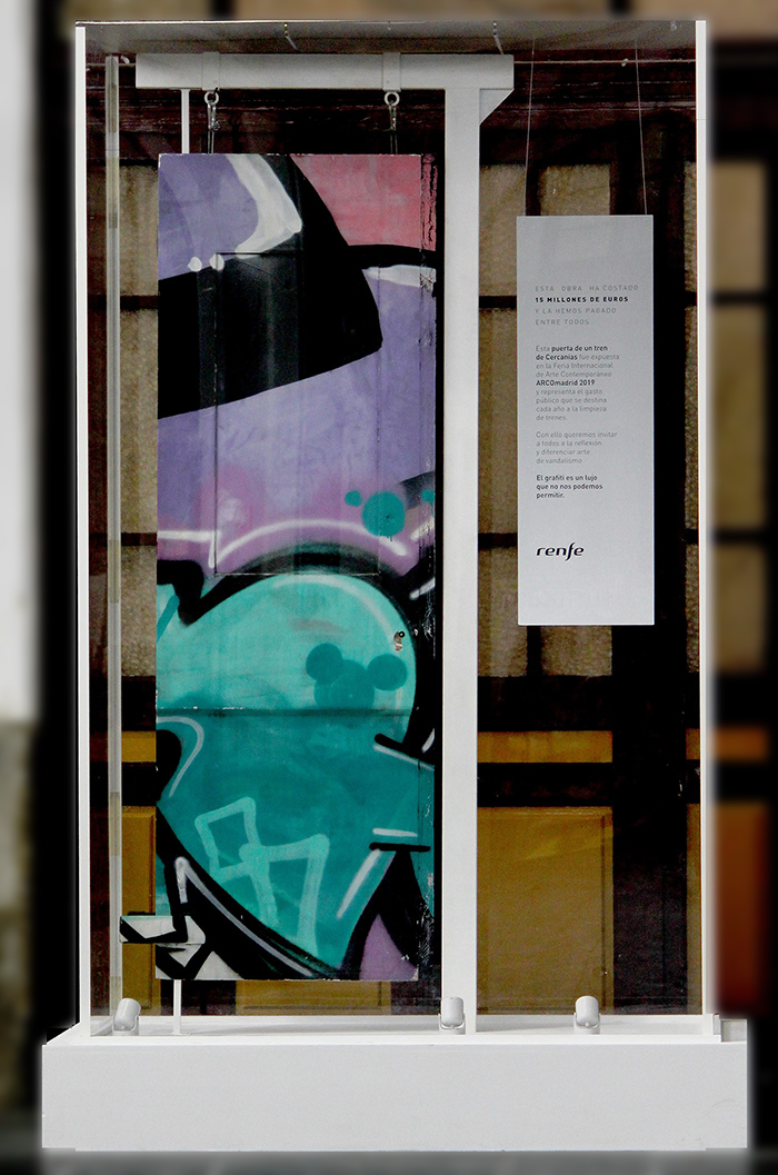 “La obra más cara” representa los 15 millones de euros que, según cálculos de Renfe, supuso la limpieza de grafitis en trenes durante 2018, sin contar los gastos de vigilancia y seguridad en estaciones para evitar estos actos vandálicos, con los que la factura subiría hasta los 25 millones de euros anuales, con los que se podrían comprar tres trenes nuevos de Cercanías todos los años, o un nuevo Ave cada dos años.
