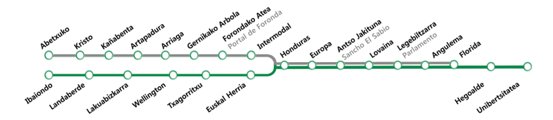 Con esta ampliación, los trenes que salen desde Ibaiondo llegarán hasta Unibertsitatea, mientras que los que salen desde Abetxuko terminarán en Florida, última parada donde se podrá hacer transbordo con la línea de Ibaiondo. En la parada de Florida se ha previsto la futura ampliación de línea hacia el barrio de Salburua (ver noticia).