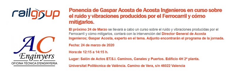 El próximo 24 de marzo se celebra en el salón de actos de la Escuela de Caminos, Canales y Puertos de la Universidad Politécnica de Valencia una jornada sobre las vibraciones producidas por los trenes