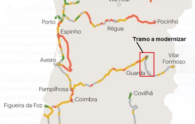 También se modernizarán las instalaciones fijas de tracción eléctrica y la infraestructura de señalización y telecomunicaciones y se suprimirán los pasos a nivel de Celorico, Gare y Baraçal, construyendo pasos alternativos. Los trabajos incluyen la sustitución de las traviesas actuales por otras de hormigón monobloque y el cambio de vías en las estaciones de Celorico da Beira, Pinhel, Vila Franca das Naves y Guarda, para permitir el cruce de trenes de 750 metros de largo y la mejora de la operación.