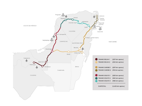 El tercer tramo del proyecto, que se extenderá desde Calkini a Izamal está en proceso abierto de licitación y en el futuro se licitarán el cuarto tramo, desde Izamal a Tulum y el quinto que se extenderá desde Tulum a Cancún. el Tren Maya que se completará en 2022, creará más de 80.000 empleos.