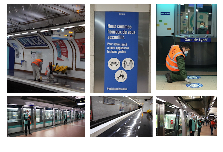 RATP mantiene las medidas implementadas desde el comienzo de la crisis, como la distribución de mascarillas a su personal de operación y mantenimiento, la limpieza y desinfección de los puestos de trabajo de conductores en cada turno y la información constante a los viajeros sobre medidas de seguridad por cartelería, imagen y megafonía.