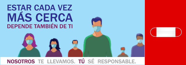 Para la recuperación de la normalidad en el servicio resulta esencial mantener las medidas de distancia social, responsabilidad fundamentalmente de cada uno de los viajeros, con la colaboración de las instituciones y las empresas públicas para que esa distancia se pueda cumplir — en este sentido, desde el pasado 4 de mayo es obligatorio el uso de mascarilla en todos los transportes públicos en España.