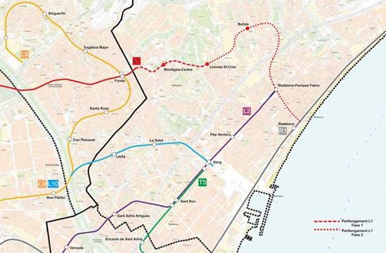 El Departamento de Territorio y Sostenibilidad de la Generalidad de Cataluña está impulsando los estudios de la segunda fase de la prolongación de la línea 1 de Metro de Barcelona hasta la localidad de Badalona.