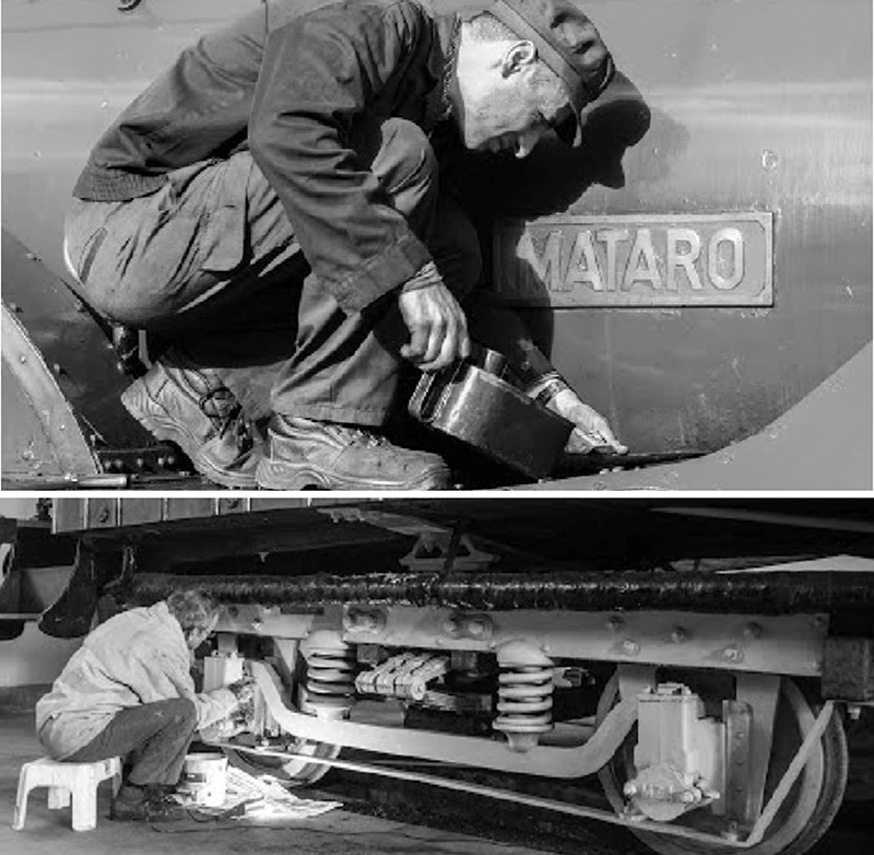 Las fotografías en blanco y negro de Perucha, fotógrafo y ferroviario, ilustra la labor de esos voluntarios y su compromiso con el proyecto del Museo al que aporta su trabajo y experiencia con generosidad, cuidado y tesón. Junto a las fotografías, dos vídeos muestran el Tren del Centenario y el encendido de la “Mataró”, réplica de la primera locomotora de vapor que recorrió la línea Barcelona-Mataró en 1848, que está en perfecto estado de funcionamiento.