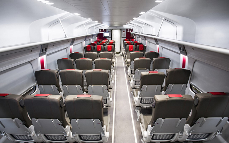 Los Talgo cuentan con una capacidad de unos 365 pasajeros distribuidos en doscientos metros de longitud, con una media de 33 pasajeros por coche. Por contra, el avión, transportaría unos 150 en un único espacio común a todos ellos, unas cinco veces más. El nuevo modelo de alta velocidad Talgo Avril actualmente en fabricación, tiene la mayor anchura interior del mercado y puede llegar a ofrecer, aproximadamente, el doble de metros cúbicos de espacio por viajero que un avión.