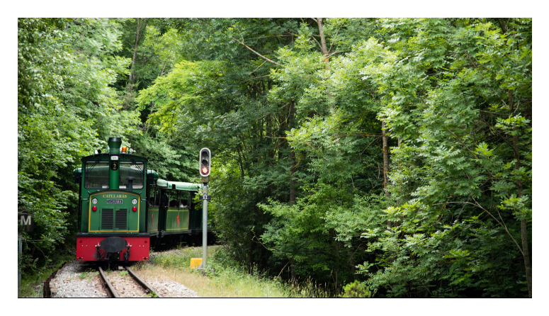 Esta línea centenaria unía la fábrica de cemento Asland de Castellar de n’Hug con Guardiola de Berguedà, desde donde partía hacia Berga y Manresa. El recorrido del tren turístico abarca 3,5 kilómetros invirtiendo alrededor de veinte minutos.
