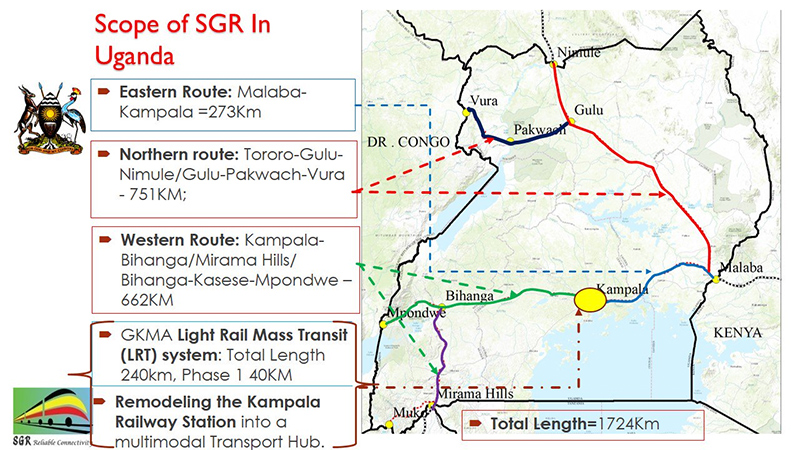 La nueva red, que en total alcanzará los 1.724 kilómetros de extensión, dispondrá de cuatro líneas: Malaba-Kampala; Kampala-Mpondwe; Tororo-Gulu y Bihanga-Mirama Hills.