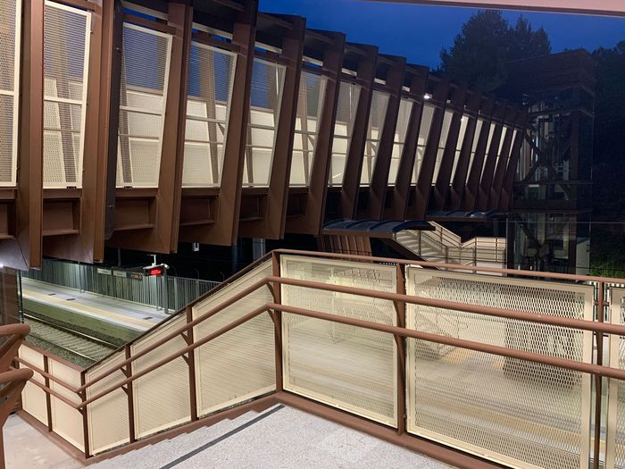 Para dicho paso elevado, Renfe ha apostado por un diseño innovador, con una arquitectura que además de funcional, aporta un valor añadido a esta zona de la comarca del Vallés Occidental. Así, la pasarela se permeabiliza en el Macizo de Monserrat, donde el color y materiales elegidos se integran perfectamente con el entorno, y su diseño en anillos secuenciales y ascensores panorámicos permiten observar desde todos los puntos de su recorrido la posición del viajero, lo que aporta sensación total de seguridad, además de luz natural para la mejora de la eficiencia energética de la estación.