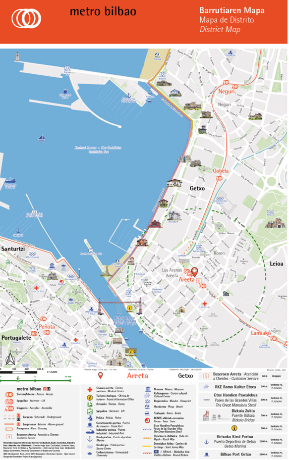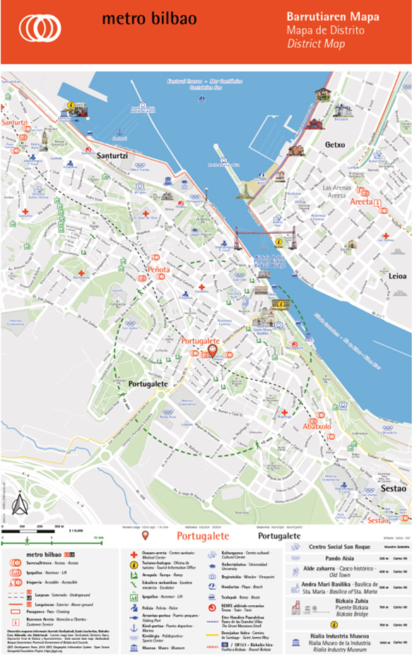En la primera fase se colocan 168 mapas repartidos en dieciocho estaciones, tanto en accesos, zona de fosteritos como en los andenes, para a continuación, y hasta finales de año continuar con el resto de la red de metro. También se trasladarán a la web de Metro Bilbao y sus redes sociales.