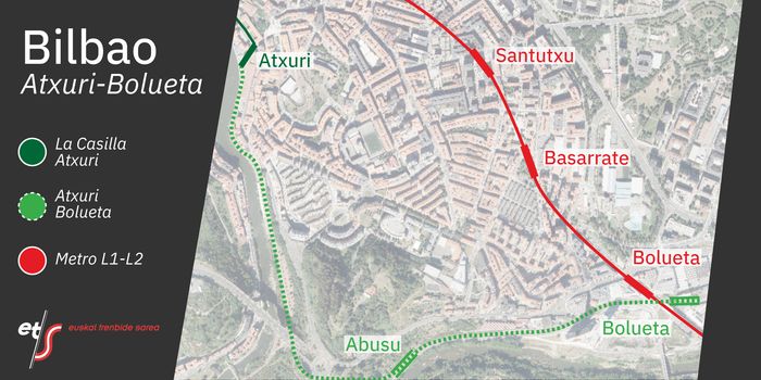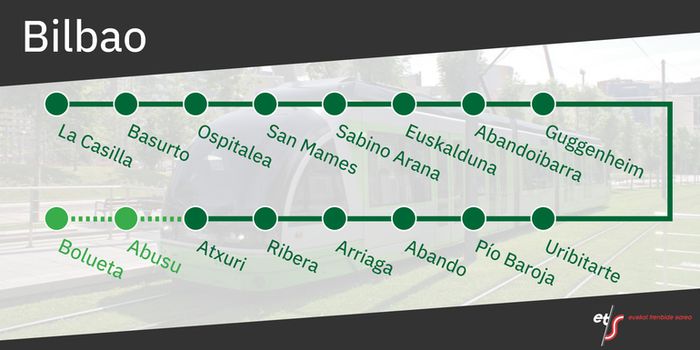 ETS analiza en la actualidad la posible implantación de una nueva parada situada en el paseo Los Caños, a la altura de la isla, así como la urbanización y adecuación del entorno de la estación de Bolueta. En caso de llevarse a cabo, estos trabajos se licitarían y adjudicarían en una segunda fase.