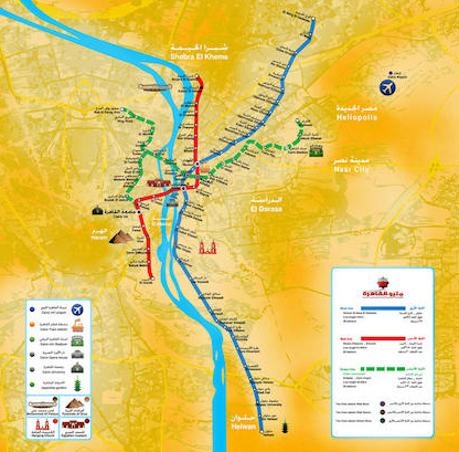 La línea 3 - verde es uan de las tres líneas de la red de metro de El Cairo, que que actualmente transportan a más de cuatro millones de viajeros diariamente. Inaugurada en 2012, la línea tiene 22,9 kilómetros de longitud y diecinueve estaciones. Una vez finalizadas las ampliaciones previstas ,debería alcanzar los cuarenta kilómetros de de longitud y las 34 estaciones y transportar número de pasajeros diario en torno a 1,5 millones.