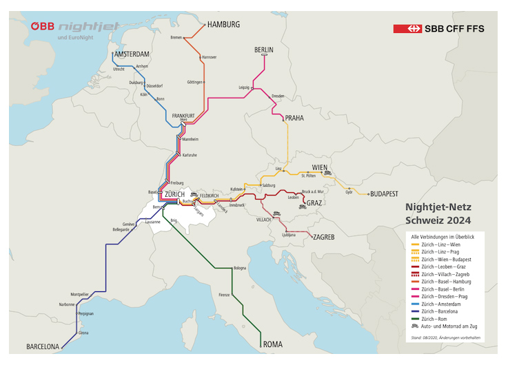 Con una demanda de tráfico internacional nocturno al alza en 2019, y durante los primeros meses de 2020 hasta la  eclosión de la pandemia, los servicios nocturnpos registraban un aumento de viajeros del 25 por ciento respecto al año anterior,  y CFF y ÖBB, han decido fortalecer sus servicios nocturnos.  El objetivo es transferir más pasajeros al ferrocarril y contribuir así a la reducción de las emisiones de dióxido de carbono, en línea con los objetivos del Acuerdo de París , y desarrollar una red de trenes nocturnos en Europa.