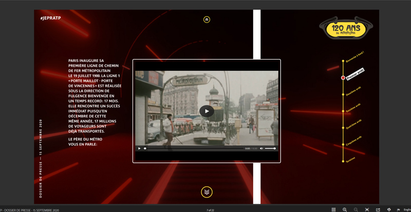 A través de la plataforma “Bienvenidos a bordo”, que se lanza hoy viernes 18 de septiembre, el operador ofrece un viaje virtual a través de un túnel del tiempo para descubrir los secretos del metro de París. La plataforma ofrece veinticinco cápsulas de video y sonido, que incluyen exploraciones y recorridos únicos.
