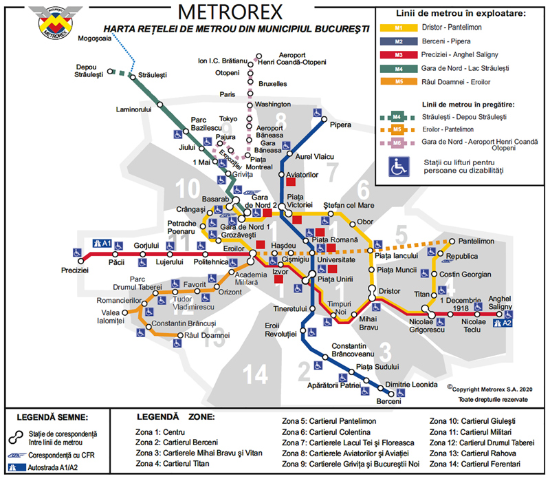 Metrorex, el operador de metro de Bucarest, ha inaugurado la línea 5 de siete kilómetros de longitud que conecta Eroilor, puntode conexión con las líneas 1 y 3, con Raul Doamnei, además dispone de un ramal a la estación y depósito en Valea Ialomitei.