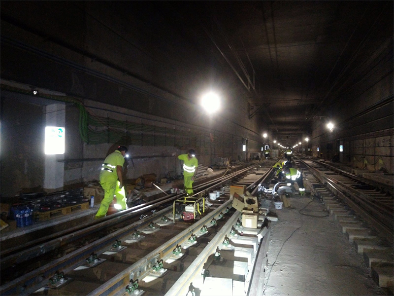 - Los trabajos se desarrollan en vías situadas en túnel, sobre placa de hormigón, que debe ser sustituida.