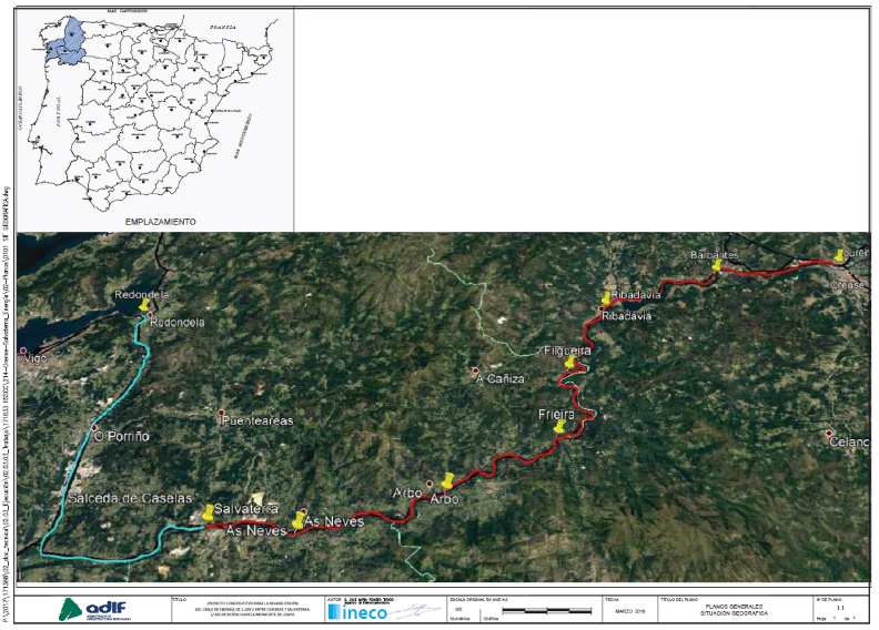 Adif ha licitado, por importe de 2.899.896 euros el contrato para la rehabilitación del cable de energía de 2.200V del tramo Orense – Salvatierra de Miño (Pontevedra), en la línea de ancho convencional Monforte de Lemos – Vigo, actuación que se enmarca dentro de la potenciación del Corredor Atlántico.