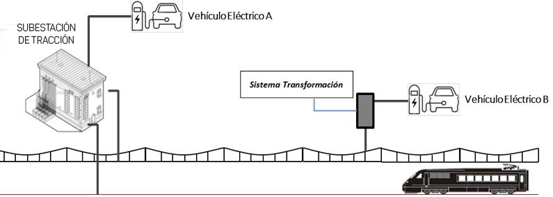 Lo novedoso de este sistema es que permite la captación de energía eléctrica en alta tensión (AT) del sistema eléctrico ferroviario y su transformación a baja tensión (BT), sin afectación al tráfico ferroviario, para la creación de puntos de recarga eléctrica abiertos al público que serán utilizados por los vehículos eléctricos.