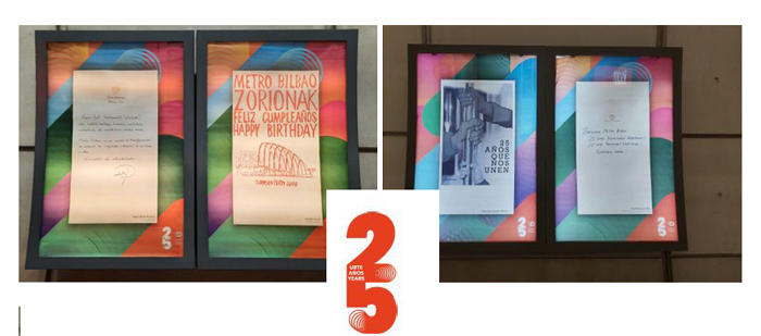 Felicitaciones en la red de Metro Bilbao por su veinticinco aniversario