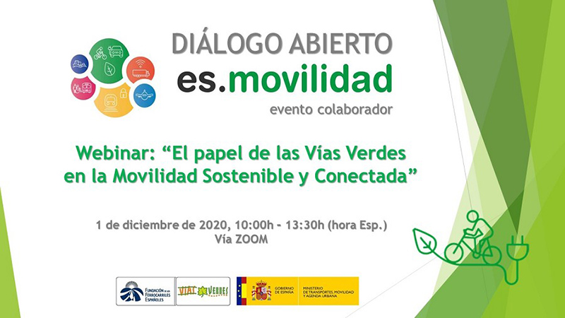 El Área de Vías Verdes de la Fundación de los Ferrocarriles Españoles ha convocado para el 1 de diciembre, de 10 a 13:30 horas el seminario web “El papel de las Vías Verdes en la Movilidad Sostenible y Conectada”.