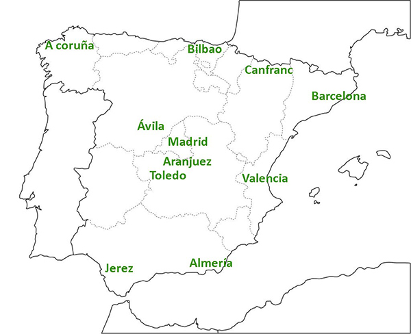 Las onces estaciones seleccionadas, por orden alfabético, son las de Almería, Aranjuez, Ávila, Barcelona Estación de Francia, Bilbao La Concordia, Canfranc, Jerez de la Frontera, La Coruña, Madrid Delicias, Toledo y Valencia Norte.