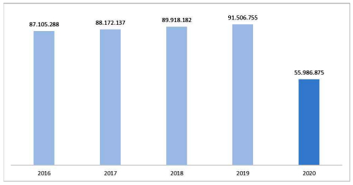 Metro Bilbao ha cerrado el ejercicio 2020 rompiendo la tendencia creciente y sostenida que se mantenía desde 2016. El operador ha registrado 55.987.465 cancelaciones, un 61,14 por ciento menor que las registradas en 2019 a pesar de que el año 2020 se inició de forma muy favorable ya que los viajes acumulados hasta final de febrero fueron un 1,7 por ciento superiores a los de 2019 en el mismo periodo.