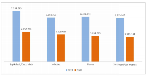 En cuanto a los gastos, el Consorcio de Transportes de Vizcaya, ha realizado una aportación total de veintisiete millones de euros, 12,5 millones más que en 2019, teniendo en cuenta que las frecuencias, salvo las nocturnas, se han mantenido de forma mayoritaria y la asunción, por parte de la empresa, de costes excepcionales relacionados con las medidas de higiene y seguridad y las campañas de concienciación para combatir el Covid-19,