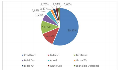 El título más utilizado, un 55,37 por ciento, ha sido el Creditrans, mientras que ha disminuido el de Gizatrans, dado que el colectivo de personas mayores de 65 años ha limitado su movilidad en mayor medida que el resto debido a las restricciones de movilidad y al confinamiento.