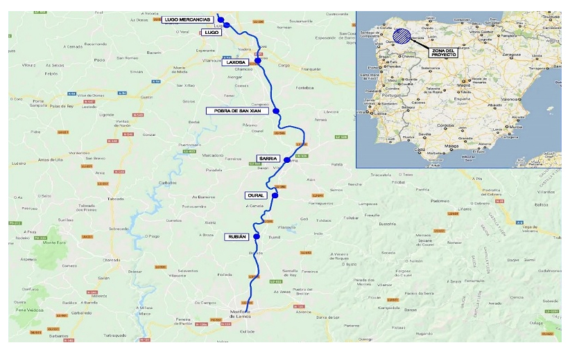 La actuación consiste en la instalación de línea área de contacto entre las estaciones de Monforte de Lemos (Puerto Seco) y Lugo Mercancías (línea León-La Coruña), un subtramo que en la actualidad no está electrificado.