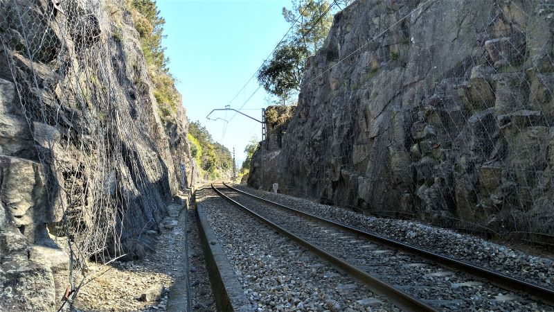 Por su parte, en la línea Guillarey-frontera portuguesa, se reparará la trinchera entre los puntos kilométricos 4/172 y 4/703, en el término municipal de Tuy. En este caso, se empleará un sostenimiento mediante claveteado de suelos (técnica conocida como “soil nailing”), se dispondrán bulones pasivos en una malla y se reforzará con una capa de mallazo electrosoldado y armaduras de refuerzo en los bulones.