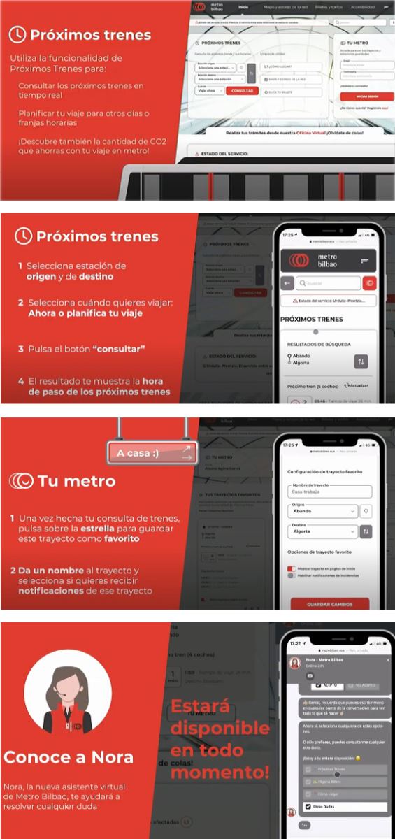 Metrobilbao ha presentado su página web con nuevas funcionalidades, especialmente diseñadas para su uso en dispositivos móviles, que permite conocer en tiempo real el horario del paso de los trenes por las estaciones y las posibles incidencias en el servicio
