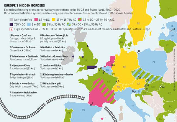 La publicación señala al ferrocarril comol eje vertebrador de un sistema de transporte europeo sostenible y refleja la complejidad de la gestión transfronteriza y de su trayectoria histórica. Por este motivo, apela a la necesidad de realizar inversiones para ampliar y reactivar las conexiones ferroviarias dentro y fuera de las fronteras nacionales. Con sus corredores transeuropeos de transporte, la Unión Europea ha establecido un proyecto de infraestructura continental para el que es fundamental el impulso de las políticas del Pacto Verde Europeo.